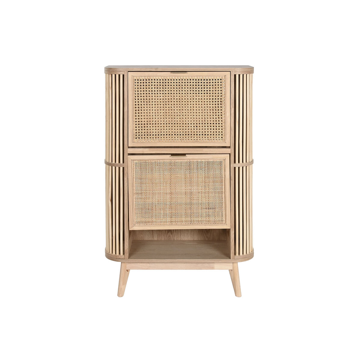 Shoe Rack Home ESPRIT Golden Natural Rattan Fir wood Tropical 70 x 29 x 115 cm In Stock